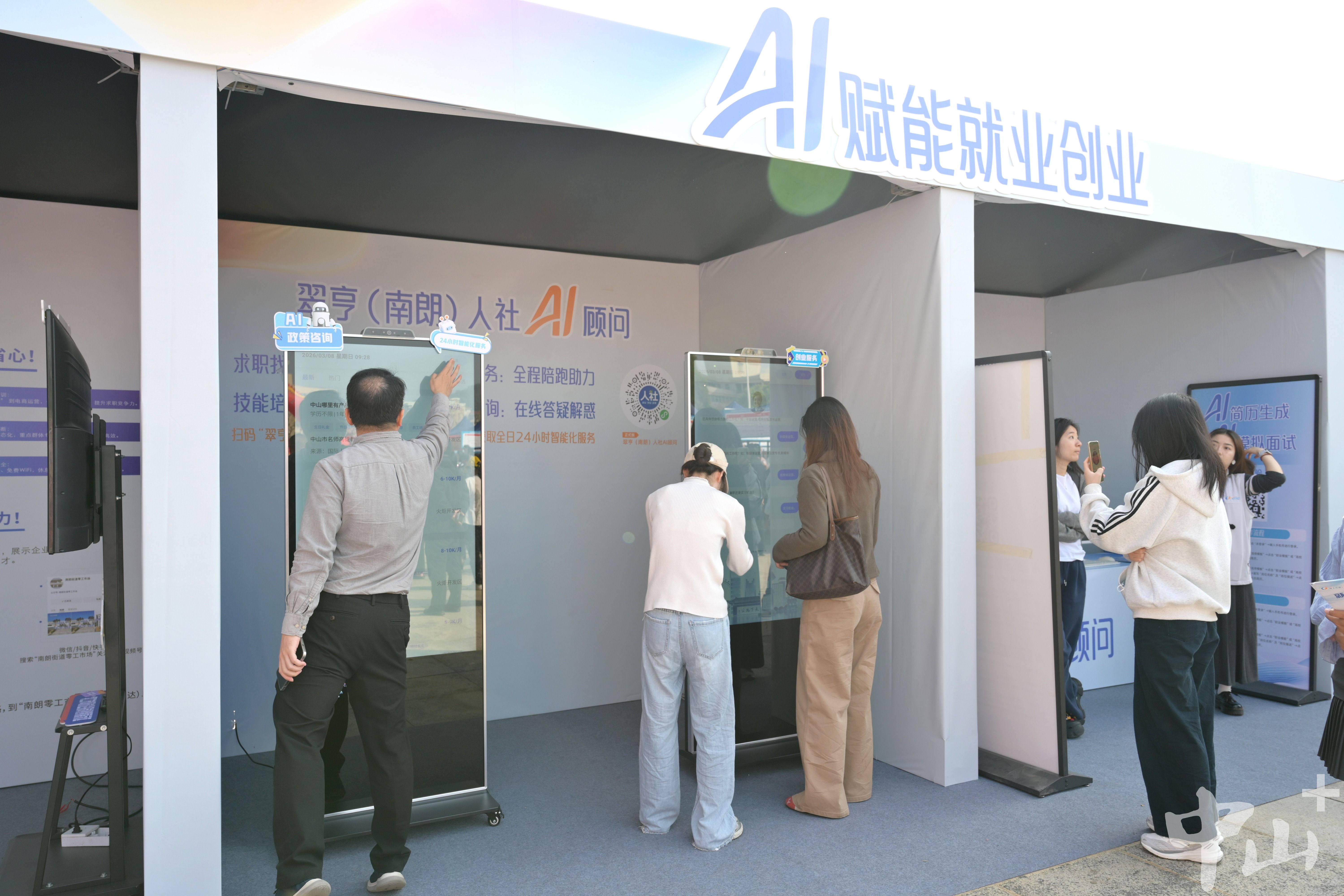 為提升就業(yè)服務(wù)質(zhì)效,活動(dòng)重磅打造“智匯求職·加速未來(lái)”——AI賦能求職體驗(yàn)站,為求職者提供一站式智慧就業(yè)服務(wù)。求職者可通過(guò)自助終端或手機(jī)掃碼,體驗(yàn)智能搜崗、AI簡(jiǎn)歷生成與優(yōu)化、AI模擬面試等前沿功能。同時(shí),現(xiàn)場(chǎng)還安排職業(yè)指導(dǎo)老師“坐診”,提供一對(duì)一求職策略輔導(dǎo)。中山人社業(yè)務(wù)骨干也現(xiàn)場(chǎng)駐點(diǎn),解讀就業(yè)補(bǔ)貼、社保繳納等政策。依托“南朗街道零工市場(chǎng)”平臺(tái),現(xiàn)場(chǎng)同步開展“直播帶崗”“訪企探崗·就業(yè)翠亨”等主題活動(dòng)。