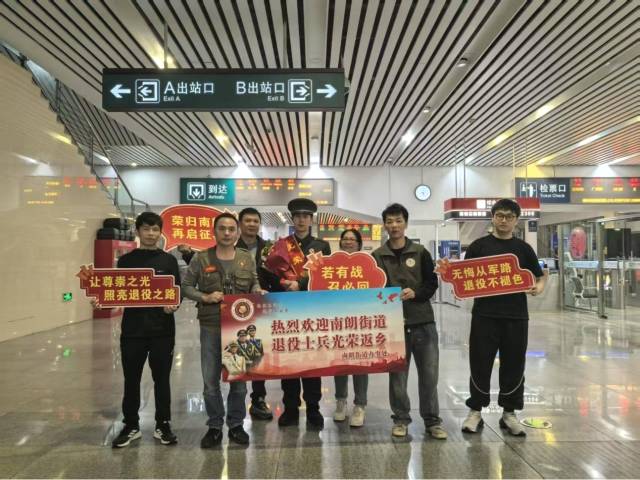 精心組織,讓榮歸之路更有溫度 當(dāng)天,街道退役軍人服務(wù)中心工作人員早早守候在出站口,現(xiàn)場(chǎng)“熱烈歡迎退役士兵光榮返鄉(xiāng)”“榮歸南朗 再啟征程”等橫幅高懸,氣氛莊重而溫馨。當(dāng)身著戎裝、英姿颯爽的退役士兵陸續(xù)走出抵達(dá)通道,等候多時(shí)的工作人員與家屬立即上前,獻(xiàn)上鮮花、披上綬帶,用熱烈的掌聲和親切的問候迎接最可愛的人回家?!靶量嗔耍 薄皻g迎回家!”一句句暖心話語,驅(qū)散了旅途疲憊,更讓尊崇之光閃耀歸途。 工作人員與退役士兵促膝交談,詳細(xì)詢問服役經(jīng)歷、旅途行程與返鄉(xiāng)規(guī)劃,向他們致以崇高敬意,衷心感謝他們把最美好的青春奉獻(xiàn)給國防事業(yè),用忠誠與擔(dān)當(dāng)守護(hù)萬家安寧。 精準(zhǔn)服務(wù),讓政策落地更有速度 為打通服務(wù)保障“最后一公里”,迎接現(xiàn)場(chǎng)同步設(shè)立政策咨詢點(diǎn),工作人員為每位返鄉(xiāng)士兵送上“政策大禮包”,面對(duì)面講解退役軍人優(yōu)待撫恤、就業(yè)創(chuàng)業(yè)扶持、報(bào)到落戶流程、社會(huì)保險(xiǎn)接續(xù)、組織關(guān)系轉(zhuǎn)接、優(yōu)待證辦理等“一站式”服務(wù)事項(xiàng),耐心細(xì)致解答疑問,確保退役士兵“出站即知政策、返鄉(xiāng)即享服務(wù)”,讓暖心服務(wù)貫穿榮歸全程。 “沒想到剛下飛機(jī)就有家鄉(xiāng)人迎接,還送來了這么詳細(xì)的政策指引,太貼心了!”退役士兵們表示,脫下軍裝仍是戰(zhàn)士,回到家鄉(xiāng)將繼續(xù)發(fā)揚(yáng)人民軍隊(duì)聽黨指揮、能打勝仗、作風(fēng)優(yōu)良的光榮傳統(tǒng),盡快轉(zhuǎn)變角色、適應(yīng)新崗,以飽滿熱情投身家鄉(xiāng)建設(shè),在新的征程上再立新功。