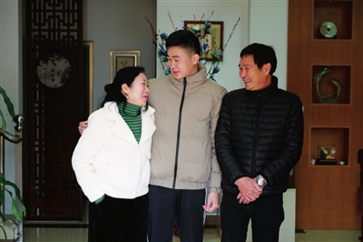 南朗“準(zhǔn)新兵”程俊楠(中)和父母的合照。本報(bào)記者 易承樂 攝