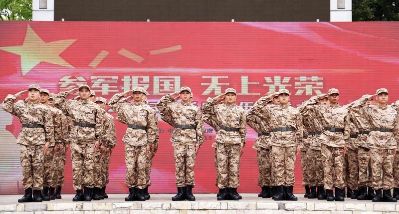 “我是中國(guó)人民解放軍軍人,我宣誓:服從中國(guó)共產(chǎn)黨的領(lǐng)導(dǎo),全心全意為人民服務(wù),服從命令,嚴(yán)守紀(jì)律……”鏗鏘有力的誓言將送兵儀式推向高潮,新兵們的錚錚誓言響徹云霄,現(xiàn)場(chǎng)熱血沸騰。 新兵進(jìn)行入伍宣誓。記者 文波 攝