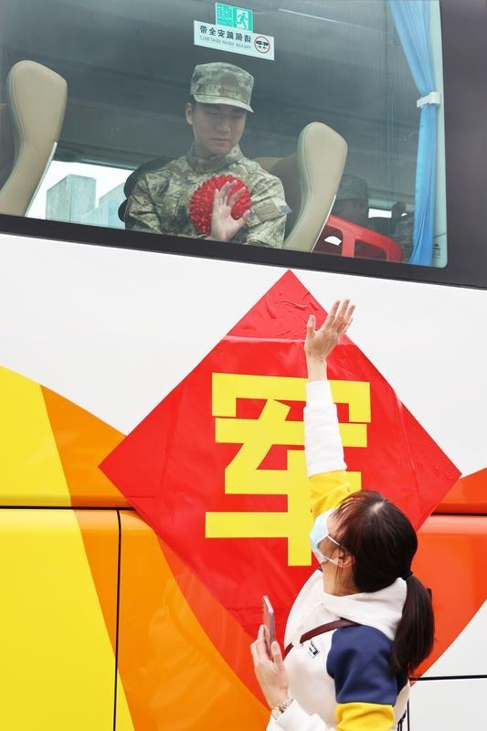 東區(qū)街道新兵潘子晨的母親鄭紅麗深情囑咐道:“兒行千里母擔(dān)憂。你們此行遠(yuǎn)離家鄉(xiāng)和親人,一定要銘記父老鄉(xiāng)親對(duì)你們的殷殷囑托,無(wú)論是在邊疆巡邏、高山上練兵,還是為祖國(guó)站崗,希望你們?cè)诓筷?duì)里傳承中山人敢為人先的闖勁,沖鋒在前,勇?lián)笕危橹猩饺嗣駹?zhēng)光添彩!我們將為你們營(yíng)造一個(gè)穩(wěn)固的‘大后方’,時(shí)刻支持你們?!?/p> 滿載著新兵的客車徐徐駛離。記者 文波 攝
