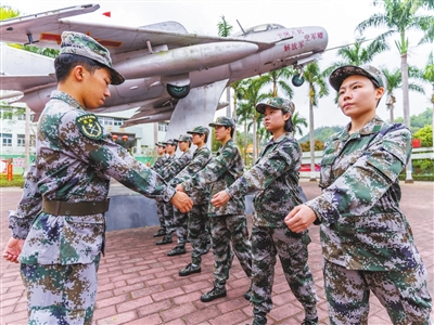 “向右看齊!向前看!現(xiàn)在教你們軍人隊(duì)列動(dòng)作中的脫帽戴帽要領(lǐng)……”3月21日下午,在中山市國防教育基地訓(xùn)練場上,一支七人訓(xùn)練小隊(duì)顯得格外特別,她們是今年上半年應(yīng)征入伍的中山女兵:梁晶、馮妙瑩、藍(lán)宇瑩、陳琬琪、溫黎嘉茵、劉燕彤、蘇汶詩。 她們都是00后女大學(xué)生,身著迷彩服,精神抖擻地在教官羅偉進(jìn)的帶領(lǐng)下有序而緊張地開展隊(duì)列訓(xùn)練。“七朵金花”青澀稚嫩的臉上寫滿了對軍旅生活的向往和期待。她們將通過幾天的役前教育訓(xùn)練,邁出軍旅生活第一步。 ■五次報(bào)名應(yīng)征終圓夢 七朵金花中,沙溪鎮(zhèn)占據(jù)兩席名額,她們分別是藍(lán)宇瑩和劉燕彤。沙溪鎮(zhèn)武裝部工作人員劉偉立說:“從歷年來看,這次是我們鎮(zhèn)出女兵人數(shù)最多的一次。其中,龍聚環(huán)村民小組更是出兵大戶,幾乎每年都有男女兵從這里出?!?/p> 身高1.7米的劉燕彤就來自沙溪鎮(zhèn)樂群村(龍聚環(huán)村民小組),就讀于廣東海洋大學(xué),是一名大二學(xué)生?!拔矣洃浿忻看未謇镉腥水?dāng)兵入伍,都會(huì)舉行隆重的送兵儀式,整個(gè)村子鑼鼓喧天鞭炮齊鳴,還有舞獅表演助陣,好熱鬧。很小的時(shí)候我就覺得當(dāng)兵很威風(fēng)很光榮,在我心里也就埋下了要當(dāng)兵的種子?!眲⒀嗤f:“我對部隊(duì)生活充滿了期待,進(jìn)入部隊(duì)后我希望自己能考上軍校留在部隊(duì)長期發(fā)展?!?/p> 藍(lán)宇瑩來自沙溪鎮(zhèn)匯源社區(qū),就讀于廣東技術(shù)師范大學(xué),是一名大三學(xué)生。她曾在網(wǎng)上報(bào)名應(yīng)征了5次,可見其參軍入伍決心之大?!拔覐男【秃艹绨蒈娙?,從小學(xué)一直到大學(xué)都是學(xué)校國旗護(hù)衛(wèi)隊(duì)的隊(duì)員?!彼{(lán)宇瑩表示,幸運(yùn)的是今年3月份,自己終于圓夢軍營即將前往某戰(zhàn)區(qū)海軍服役。 藍(lán)宇瑩的母親錢梅香表示:“我非常支持女兒的決定,感覺入伍對女生來說是一種很好的鍛煉。如果有機(jī)會(huì),我還想讓小兒子上大學(xué)后也進(jìn)入部隊(duì)參軍報(bào)國,向姐姐學(xué)習(xí)?!?/p> ■對軍營生活充滿期待 七朵金花中,來自南朗街道下沙村的馮妙瑩就讀于廣東醫(yī)科大學(xué),今年6月份大學(xué)畢業(yè)。“我們做家長的就是希望她入伍后好好干,加油努力?!瘪T妙瑩的父親不善言辭,非常支持女兒的從軍決定,“我年輕時(shí)也想當(dāng)兵,但身體條件不合格,錯(cuò)失了機(jī)會(huì)。” “我大一就加入了學(xué)校國旗護(hù)衛(wèi)隊(duì),通過日復(fù)一日的隊(duì)列訓(xùn)練,開始向往激情如火的軍營生活?!瘪T妙瑩告訴記者,“對即將到來的部隊(duì)生活,既期待又有點(diǎn)擔(dān)心。擔(dān)心去到一個(gè)陌生的環(huán)境會(huì)不適應(yīng),但既然選擇了這條路,我一定會(huì)克服困難,堅(jiān)持下去,爭取留在部隊(duì)發(fā)展,早日成為一名優(yōu)秀軍人?!?/p> 來自民眾街道的梁晶就讀于南華大學(xué),今年6月即將大學(xué)畢業(yè)。她剛進(jìn)入大一就提交了入黨申請書,2022年正式成為一名共產(chǎn)黨員。梁晶說:“2021年河南特大暴雨期間,通過新聞媒體看到中國軍人逆流而上,連夜出征轉(zhuǎn)移群眾的場景讓我深受感動(dòng)。那時(shí)起,我就萌生了參軍的想法?!毙疫\(yùn)的是,她今年終于圓夢軍營,她表示:“面對未知的軍營生活,我已經(jīng)作好了心理準(zhǔn)備。進(jìn)入部隊(duì)后,我一定會(huì)好好適應(yīng),有信心能在部隊(duì)干好?!?/p> 臨近傍晚,一天的訓(xùn)練就要結(jié)束了,中山市國防教育基地門口上方一條寫著“保家衛(wèi)國終不悔,綠色軍營獻(xiàn)青春”的紅色橫幅迎風(fēng)招展,不遠(yuǎn)處的軍營生活正等著中山這“七朵金花”的到來,她們也在憧憬著…… 記者 張倩 ◆編輯:龍慧◆二審:鄭沛鋒◆三審:周亞平 |