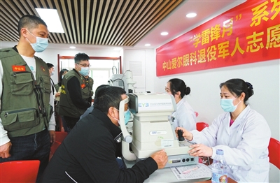▲醫(yī)務(wù)人員為退役軍人開(kāi)展眼健康服務(wù)。(資料圖)