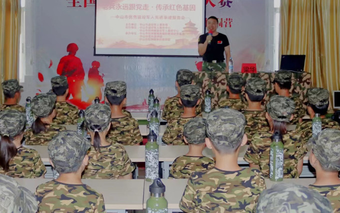 老兵鄭容添表示,老兵宣講團是一個學(xué)習(xí)的平臺,加入宣講團對個人來說是一種義務(wù)與責(zé)任,成員們將不忘初心,牢記使命,為坦洲的國防和青少年成長教育盡一點微薄之力,為坦洲和美發(fā)展講好優(yōu)良傳統(tǒng)和革命故事,激勵青少年健康成長。 “老兵宣講團”各成員在現(xiàn)場分享退役后工作和創(chuàng)業(yè)經(jīng)歷,介紹了開展各類志愿活動的故事。老兵們的好經(jīng)驗、好做法讓大家很受啟發(fā)。 坦洲鎮(zhèn)公共服務(wù)辦公室負責(zé)人表示,退役軍人為國防和軍隊建設(shè)作出了重要貢獻,是社會主義現(xiàn)代化建設(shè)的重要力量,是黨和國家的寶貴財富。組建“老兵宣講團”開展紅色宣講活動意義重大,要結(jié)合在“八一”“國慶”“黨的二十大”等重要時間節(jié)點,有計劃地開展“老兵宣講團”進學(xué)校、進社區(qū)、進農(nóng)村、進機關(guān)、進企業(yè)等宣講活動,大力弘揚優(yōu)秀退役軍人的先進事例,營造崇軍優(yōu)屬的良好社會氛圍,為全鎮(zhèn)經(jīng)濟社會發(fā)展凝聚強大力量。 當(dāng)天下午,“老兵宣講團”成員梁華來到坦洲鎮(zhèn)雛鷹國防教育研學(xué)基地,為開展夏令營軍訓(xùn)的60余名學(xué)生上了一堂生動的愛國主義教育課。梁華結(jié)合自身16年的軍旅生涯向?qū)W生們普及國防教育知識,講述強軍興軍歷史及中國軍人的職責(zé)和使命,讓孩子們近距離感受軍人氣質(zhì)和榮耀,增強他們強國強軍、保家衛(wèi)國的責(zé)任感和使命感。  ▲“老兵宣講團”成員梁華給學(xué)生上國防教育課。