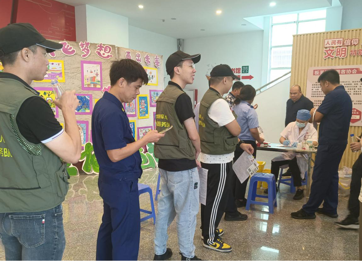 7月3日至4日,板芙鎮(zhèn)連續(xù)兩天在鎮(zhèn)黨群服務(wù)中心開展2023年無償獻血活動。板芙鎮(zhèn)退役軍人服務(wù)中心積極響應(yīng)號召,組織發(fā)動30余名退役軍人紅旗志愿服務(wù)隊隊員參與獻血8000毫升,以實際行動傳遞希望,奉獻愛心。  板芙鎮(zhèn)退役軍人紅旗志愿服務(wù)隊隊員排隊等候無償獻血。
