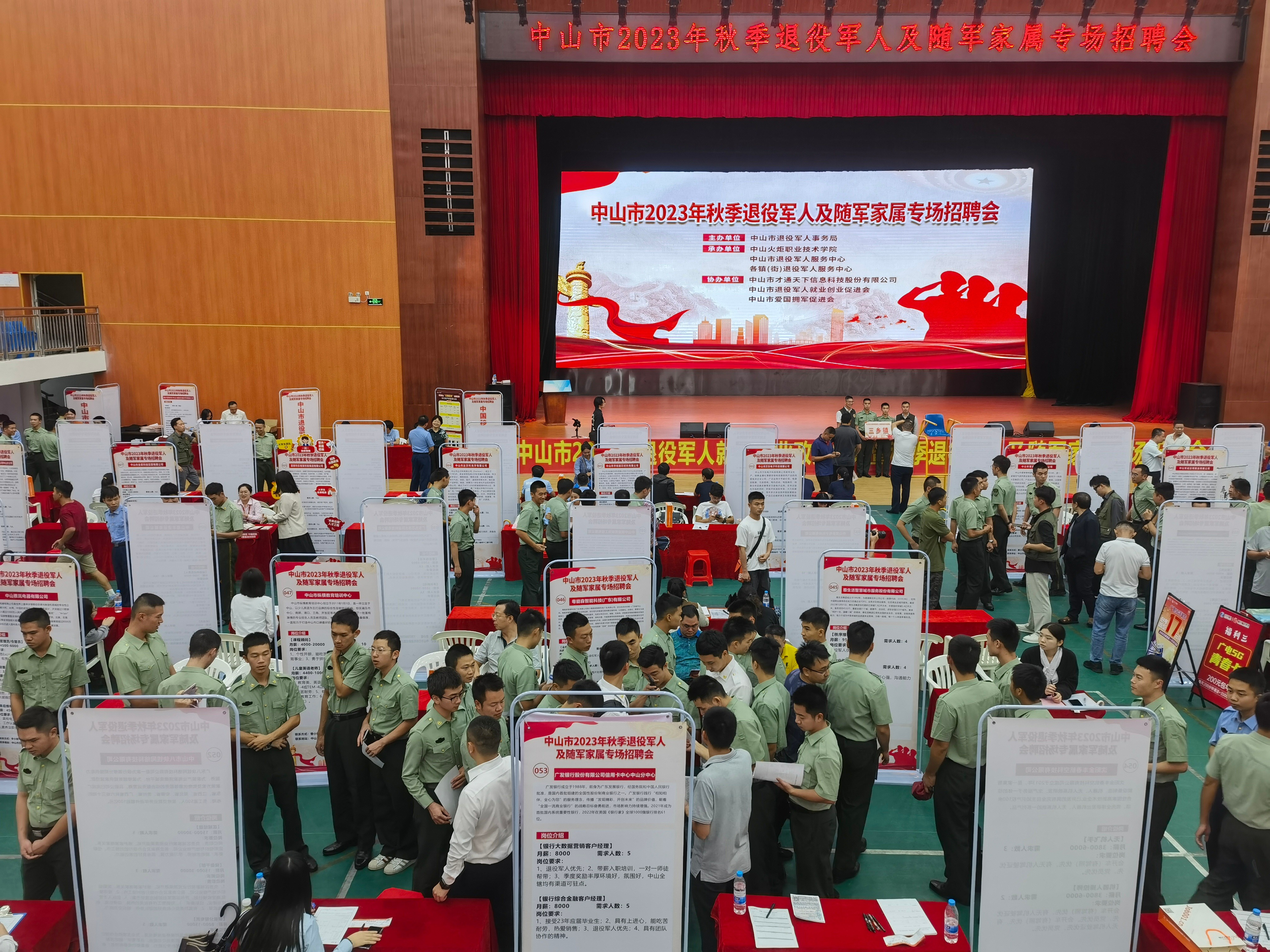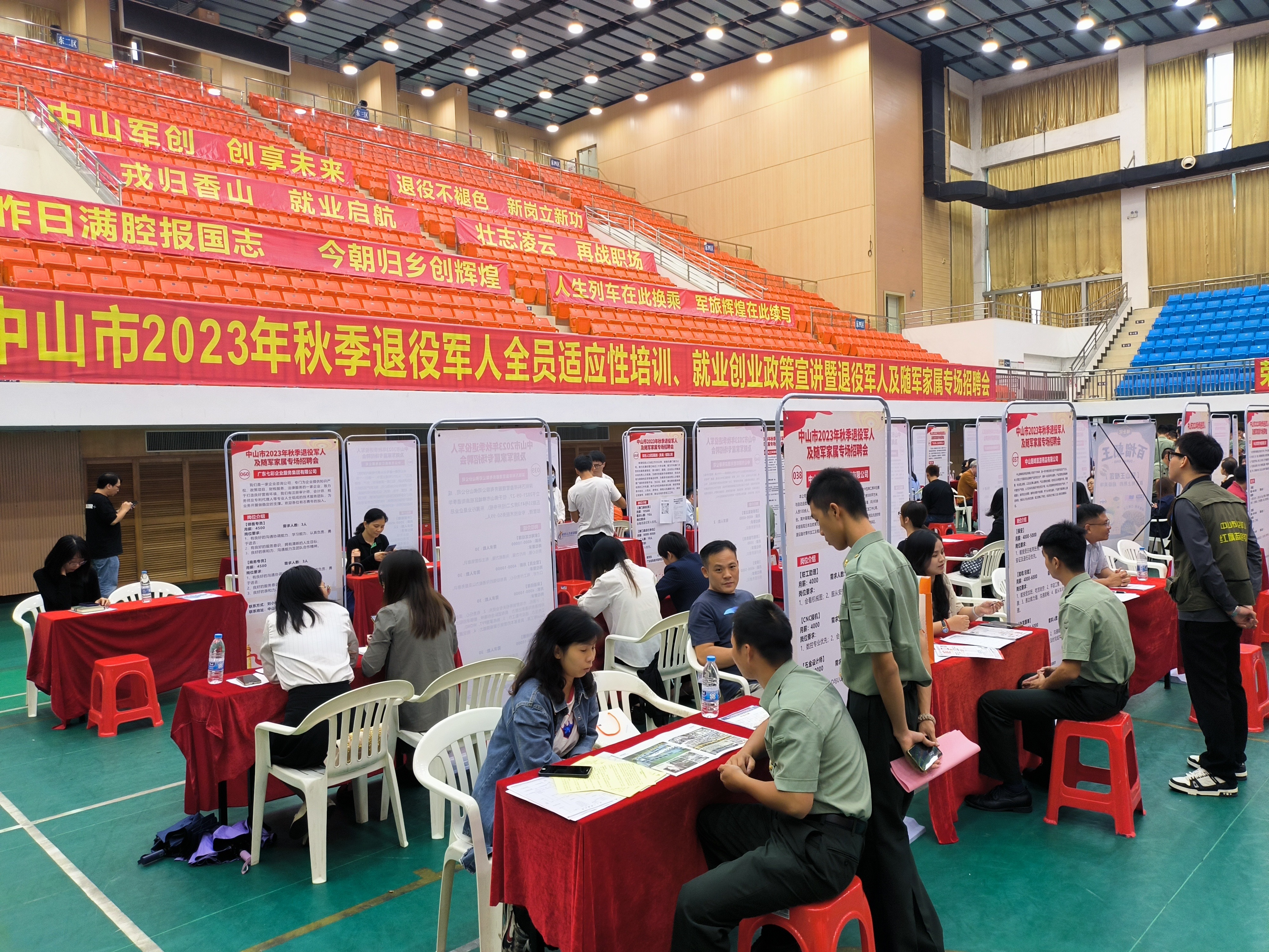 中山市2023年秋季退役軍人及隨軍家屬專場招聘會現(xiàn)場。(市退役軍人事務局供圖) 為深入開展“我為群眾辦實事”實踐活動,推動主題教育走深走實、見行見效,10月20日下午,中山市2023年秋季退役軍人及隨軍家屬專場招聘會在中山火炬職業(yè)技術(shù)學院體育館成功舉辦。專場招聘會由中山市退役軍人事務局主辦,中山火炬職業(yè)技術(shù)學院、中山市退役軍人服務中心、各鎮(zhèn)(街)退役軍人服務中心承辦,中山市才通天下信息科技股份有限公司、中山市退役軍人就業(yè)創(chuàng)業(yè)促進會、中山市愛國擁軍促進會協(xié)辦。