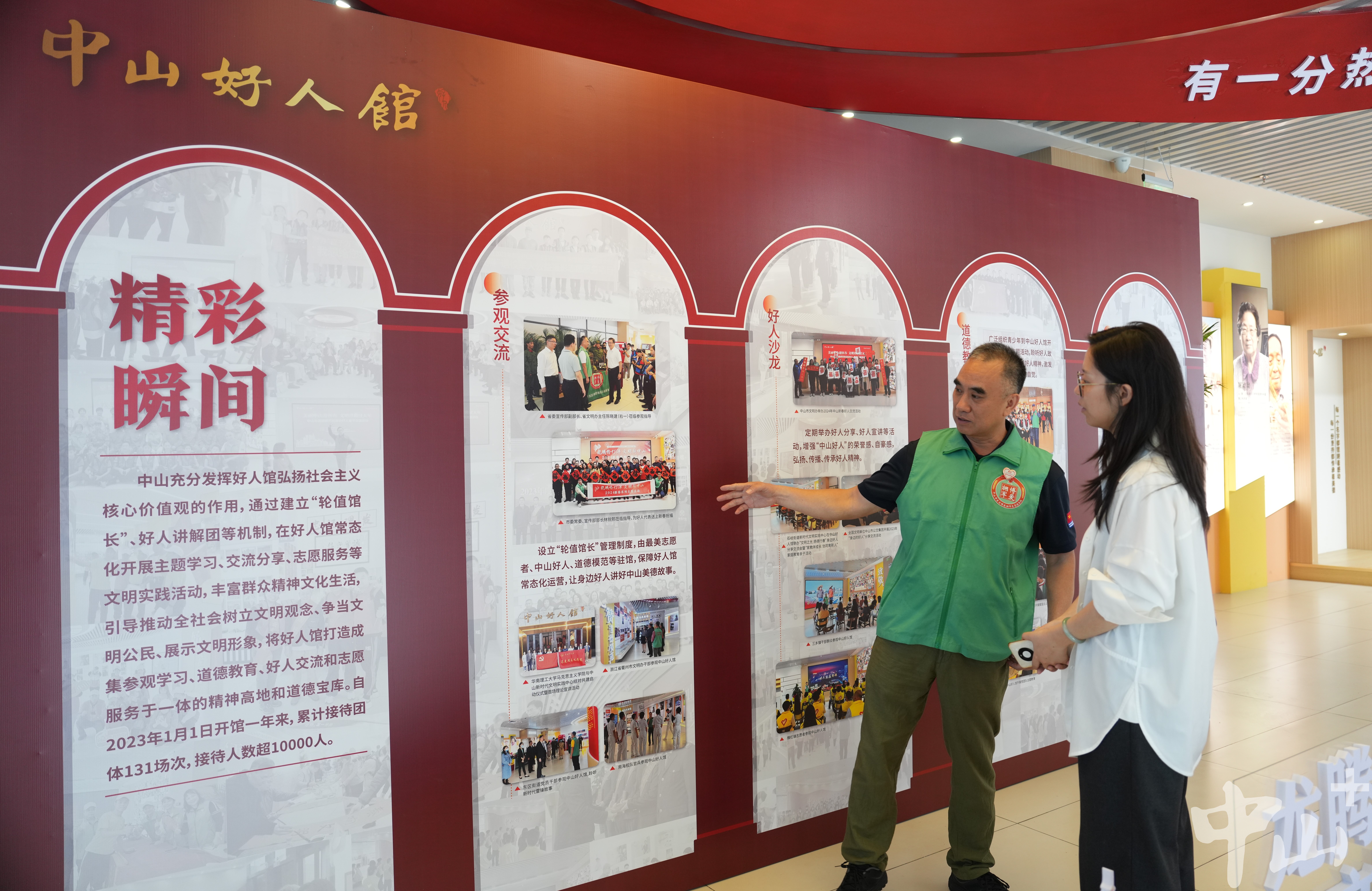 作為一名退伍軍人,李克有很多曾一起在戰(zhàn)場(chǎng)上出生入死的戰(zhàn)友,其中不乏已經(jīng)為國(guó)捐軀的烈士。自2007年起,他便自發(fā)組織尋找犧牲的中山籍戰(zhàn)友,先后6次帶隊(duì)前往廣西邊境的多個(gè)烈士陵園,成功尋到29名犧牲戰(zhàn)友信息,并將相關(guān)信息報(bào)送給中山市退役軍人事務(wù)局。 “我有一位戰(zhàn)友,寧愿把生的希望留給其他人,19歲不到就犧牲在戰(zhàn)場(chǎng)上。他們已經(jīng)離我們而去,更重要的是我們能為他們做些什么。所以逢年過(guò)節(jié)我都會(huì)看望他們的家人,把歡樂(lè)也帶給老人家?!崩羁苏f(shuō)。 2016年,得知戰(zhàn)友的女兒患先天性心臟病,須進(jìn)行心肺聯(lián)合移植手術(shù),李克立即帶頭捐款,并聯(lián)系政府相關(guān)部門(mén)和電視臺(tái),通過(guò)媒體報(bào)道讓更多愛(ài)心人士關(guān)注到了這位困難老兵。在他的多方奔走下,社會(huì)各界紛紛伸出援助之手,募集醫(yī)藥費(fèi)40余萬(wàn)元,助戰(zhàn)友的女兒順利完成了手術(shù)。 牽頭成立志愿服務(wù)隊(duì) 延續(xù)志愿精神 作為一名有著30多年志愿服務(wù)經(jīng)歷的資深志愿者,李克的生活已經(jīng)與志愿分不開(kāi)。他的身上始終有一抹綠色:在軍營(yíng),是守衛(wèi)國(guó)門(mén)的綠軍裝;在社區(qū),是服務(wù)群眾的綠馬甲。在人民群眾需要的地方,李克每次都沖在最前線。 “2020年疫情暴發(fā)時(shí),很多人都響應(yīng)號(hào)召待在家里,我覺(jué)得作為一個(gè)打過(guò)仗的老兵,我總得站出來(lái)做點(diǎn)事?!睕](méi)有過(guò)多考慮,李克第一時(shí)間加入到了志愿者隊(duì)伍中,并在社區(qū)堅(jiān)守了整整60天。當(dāng)時(shí)防護(hù)物資匱乏,李克還自掏腰包托人在廣州購(gòu)買(mǎi)了6萬(wàn)元左右的防護(hù)物資,全部捐贈(zèng)給了在一線抗疫的工作人員。 近年來(lái),李克還積極捐資助學(xué)、支援災(zāi)區(qū)、扶危濟(jì)困,連續(xù)6年資助6名困難學(xué)生,為汕尾市陸河中學(xué)捐贈(zèng)10套多媒體電腦設(shè)備,堅(jiān)持參與無(wú)償獻(xiàn)血直到60歲。 2018年起,李克擔(dān)任文明城市巡查監(jiān)督員,奔走在街道各個(gè)路口、每條小巷,整理亂停亂放的共享單車(chē),清理“牛皮癬”小廣告,保障街頭巷尾干凈衛(wèi)生。同一年,為更有組織地開(kāi)展志愿活動(dòng),李克牽頭成立了一支以退役軍人為主導(dǎo)的東區(qū)博愛(ài)擁軍志愿服務(wù)隊(duì),把戰(zhàn)友們凝聚在一起,共同為社會(huì)作貢獻(xiàn)。如今,這支志愿服務(wù)隊(duì)已從最初的8名成員,逐漸壯大至400多人,成為服務(wù)社會(huì)的一支生力軍。 講好好人故事,傳承紅色文化 4月19日上午,記者在“中山好人館”見(jiàn)到了正在擔(dān)任“輪值館長(zhǎng)”的李克。從去年1月開(kāi)始,他每個(gè)月都參與輪值,先后為140多場(chǎng)活動(dòng)、1萬(wàn)多名市民群眾義務(wù)講解博愛(ài)之城的凡人善舉、好人大愛(ài)。  正在中山好人館輪值的李克。記者 劉萬(wàn)杰 攝