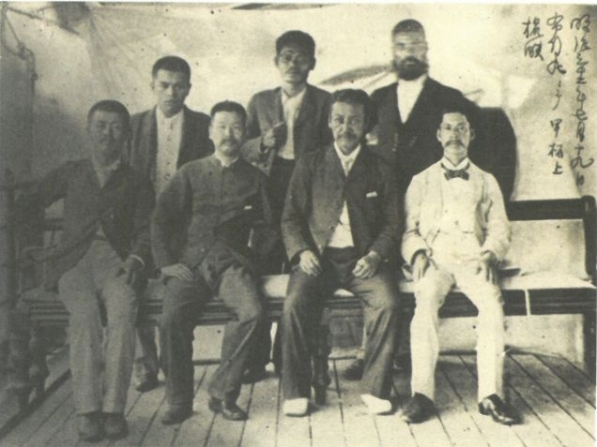 1899年7月21日,出發(fā)菲律賓前,眾人在“布引丸”上的合影