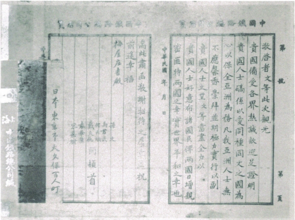 孫中山回國后致梅屋莊吉的感謝函