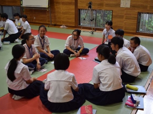 中山市華僑中學學生與櫻馬場中學生友好交談
